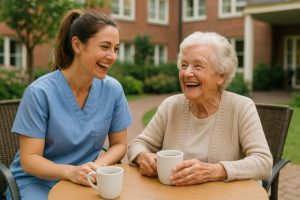 たとえば「近くの人たちは親切で、よく話しかけてくれる」といった使い方が自然です。